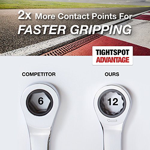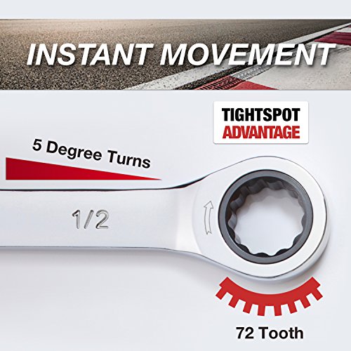 OUR ULTIMATE TIGHTSPOT WRENCH TO WORK FASTER IN SMALL SPACES: Our incredibly priced, 5 degree ratcheting movement is designed to access spots where standard ratchets will not have enough swing. The 72 teeth inside the 100% steel ratcheting box end will speeds you through jobs quickly with no need to lift. And without lifting, you stay glued to the fastener until the turning is done, even if you're reaching deep into a compartment or appliance.