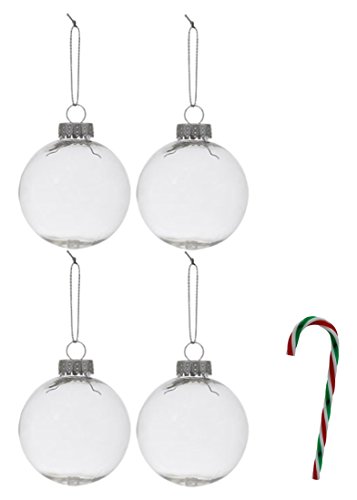 - Pack of 4 Paintable Clear Plastic Christmas Ball - Includes FREE 6" Candy Cane Ornament; Comes with Free How to Live Stress Free Ebook