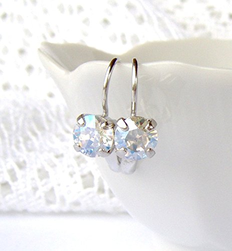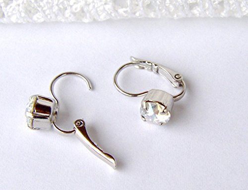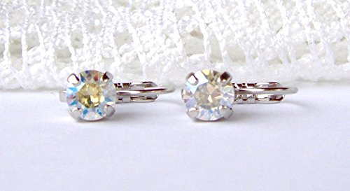 -. Title : 6mm Crystal moonlight rhinestone leverback earrings