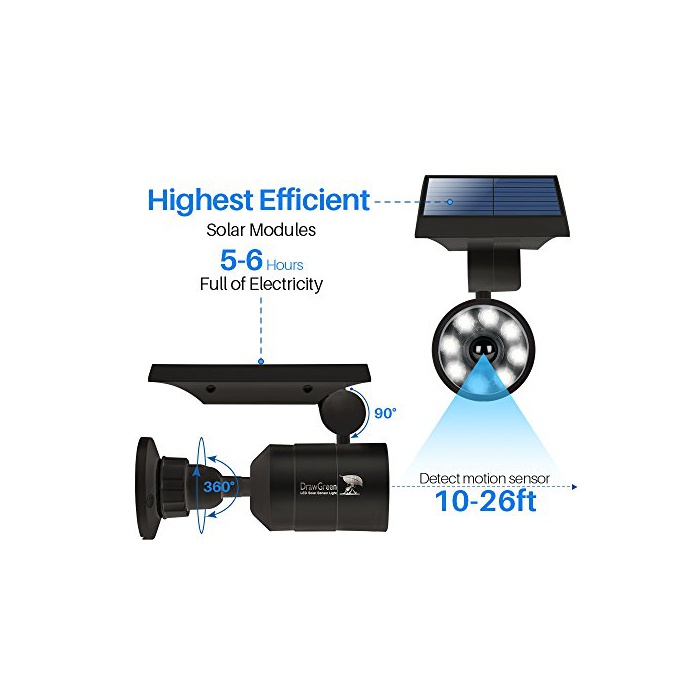 전방향 조명과 인감각도:솔라 라이트 소켓은 360°각도 조절로 옵니다.또한솔라 패널도 조절로 옵니다.최적인 각도로 전방향의 사람의 움직임을 검지하고, 확실한 조명을 제공합니다.