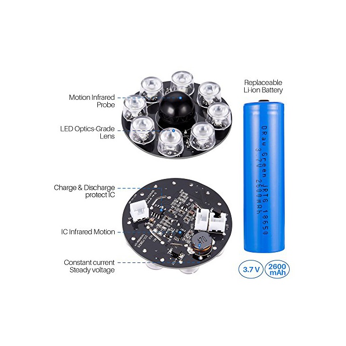PIR인 감센서 로 인해2단계의 조명 모드를 제공합니다:어두우면 무렵에서는 솔라 라이트는 자동적으로약 광조명 모드로 들어 갑니다.사람이 0-4.5m까지 가까워지는과 강광조명(고광모드)에 변화합니다.사람이 떨어진 20 초다음에 다시 약광조명 모드로고 돌아오(가)습니다.