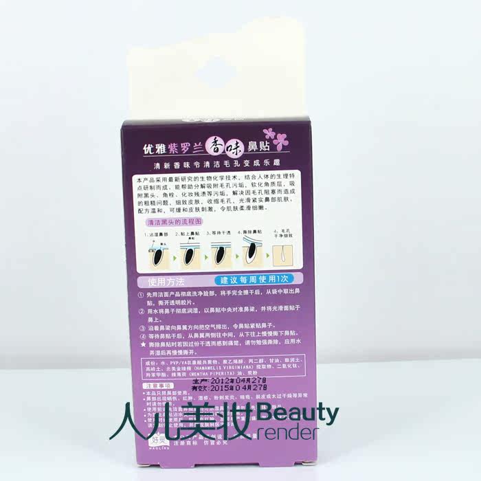 1, first with the facial cleanser thoroughly wash the face, hands completely dry, remove the nose from the bag, tear transparent film.