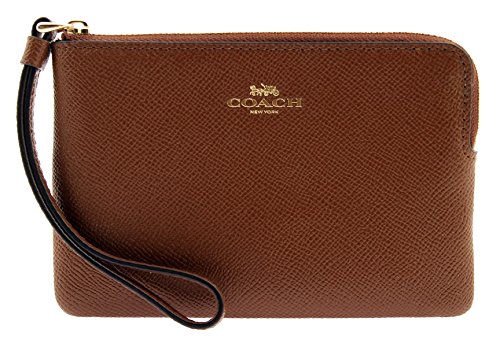 (Coach)/Accessories/Handbags/DIRECT FROM USA/COACH Corner Zip Wristlet in Crossgrain Leather in Saddle 2