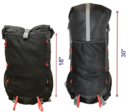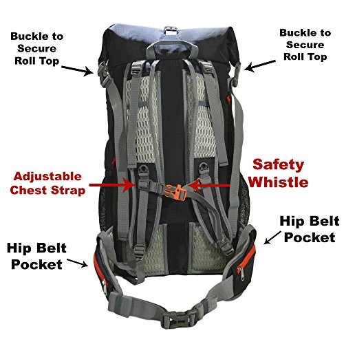 Roll Top Black Hiking Backpack - ULTRALIGHT 35L - 50L with Internal Frame - Water Resistant - Best Outdoor Trekking Travel Fishing Camping Sports Pack for Men or Women