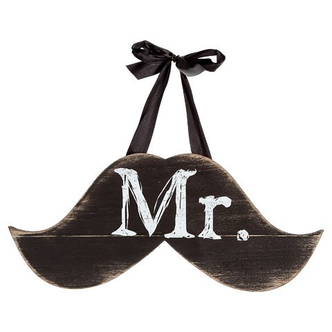 Mr/Mrs Wall Plaque with Ribbon Hanger (Mustache)