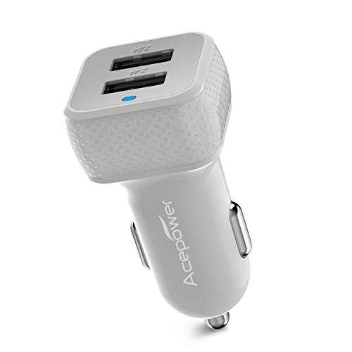 - Feature : The ACEPower Mini Dual USB Universal Car Charger allows you to charge Smartphones, tablets, music players, and electronic devices on the trip, MFI(Made for iPhone iPad iPod)Approved, optimal performance on all Apple product,cable is not included / Double injected frame consists of a polycarbonate inner layer coupled with the flexible external molding of TPU (thermoplastic polyurethane) for a soft grip / Both USB ports(2.4A and 2.0A)offers rapidly charging of smartphones, tablets, and other devices. For All Apple Products optimal recommend to use 2.4A port, Smart charge at maximum speed limited by devices or USB ports, automatically stops when the device battery is full. A Soft Internal LED power indicator is lit to show that car charger is ready for use or is charging. / Compact design for added portability, featuring of input:12-24V; Output: DC 5V 4.4A or 22W (Shared by two ports) / Safely protect devices and charger from overheated. LED only light up when charger in good working condition, automatically stops working when over current or over voltage is detected, switch to minimal charging current when battery is full. With the high charging efficiency of over 85%, the charger itself never get hot. High quality fire proof material. No radio loss in your car or effect to Bluetooth or Wi-Fi devices.