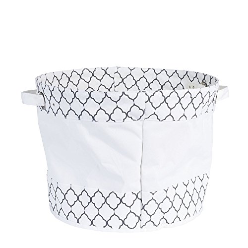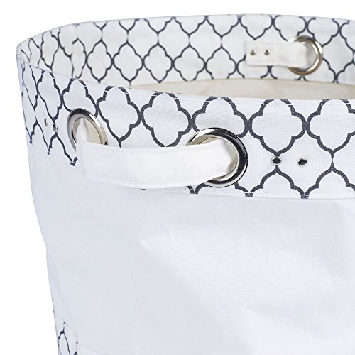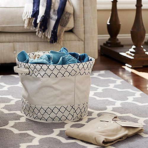 Household Essentials Beige with Decorative Trim Round Canvas Crush Hamper Tote Bag