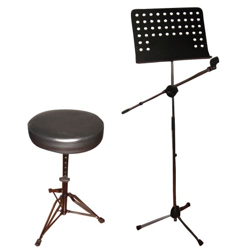 -. Title : Pyle Mic, Music Sheet Stand and Stool Package - PMSM9 Heavy Duty Tripod Microphone And Music Note Stand - PKST50 Double Braced Folding Padded Drum Throne - Keyboard Bench - Guitar Stool