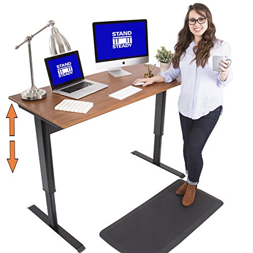 -. Feature : WHAT'S PNEUMATIC? - Great question! Pneumatic simply means that an air pump will help you raise and lower your new desk to the sitting or standing position (like how you raise and lower your office chair). The air lift assist guarantees you an instant and easy transition anywhere from 27.5 to 44.5 inches tall. Perfect for anyone up to 6' 4"! / BEAUTIFUL DESIGN - Your new standing desk can disguise itself among all other desk because there's no crank or electrical cords involved - just a discreet handle. The desktop has beautiful wood grain cherry finish and a beveled edge for ergonomics. It's sleek steel black legs give it a professional modern look; it's an excellent fit for your corporate or home office! / OPEN SPACE - With a surface of 55.5 in x 26 in (approx. 10 sq ft), you have plenty of space for 3 monitors, a keyboard, mouse, stack of books, coffee, and more. It's one level design make maintaining, cleaning, and organizing your new desk simple and easy. / HIGH QUALITY/ STURDY - Your new Tranzendesk will have a beautiful scratch resistant cherry wood grain surface and black reinforced steel legs. Built with quality materials - it can hold up to 30 lbs! / WATCH OUR VIDEO - Instead of telling you - we'd rather show you. Check out our video in the Related Video Shorts!
