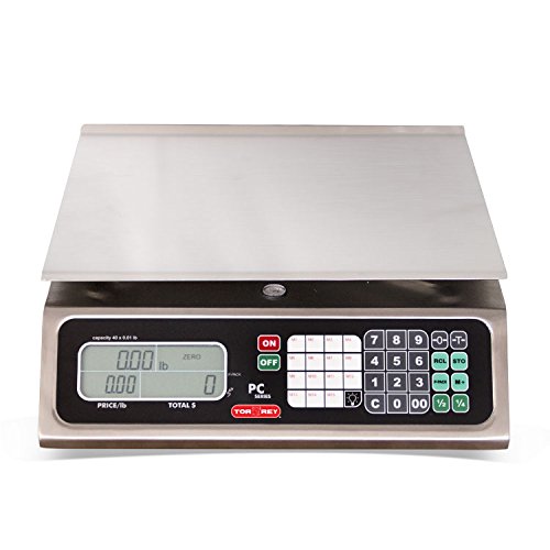 TORREY PC80L Electronic Price Computing Scale, Rechargeable Battery, Stainless Steel Construction, 100 Memories, 8 Direct Access Keys, 80 lb