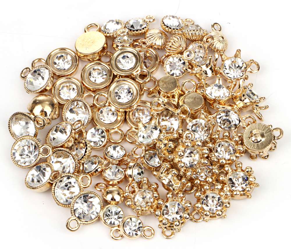 【60個セット】 ラインストーン チャーム アクセサリーパーツ 6種類 各10個ctr-e93【1~2日発送】