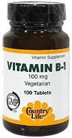 -. Binding : Health and Beauty -. Brand : Country Life -. EAN : 0015794060017 -. Feature : Essential vitamin that supports energy production / Required for proper utilization of carbohydrates to obtain energy / Vitamin B-1 (thiamin) is essential for the metabolism of carbohydrates, some amino acids and alcohol / A high carbohydrate diet, strenuous physical exercise, or chronic alcohol consumption may increase the physiological need for vitamin B-1 / Dietary Supplement -. IsAdultProduct : 0 -. IsAutographed : 0 -. IsMemorabilia : 0 -. Label : Country Life -. Manufacturer : Country Life -. Model : 015794060017 -. MPN : 6001 -. NumberOfItems : 1 -. PackageQuantity : 1 -. PartNumber : 6001 -. ProductGroup : Health and Beauty -. ProductTypeName : HEALTH_PERSONAL_CARE -. PublicationDate : 2010-08-02 -. Publisher : Country Life -. Size : 100 -. Studio : Country Life -. Title : Country Life Vitamin B-1 100 Mg, 100-Count -. UPC : 015794060017