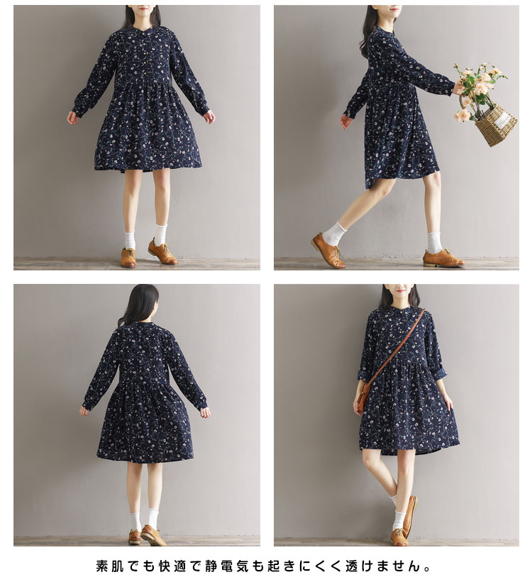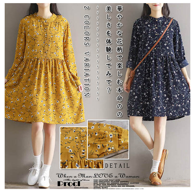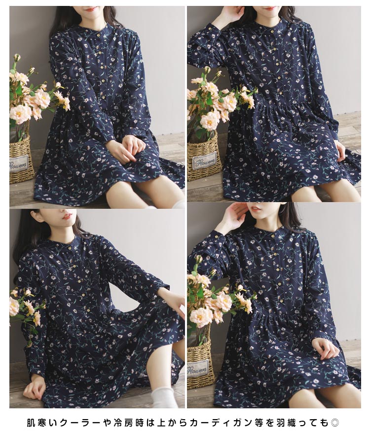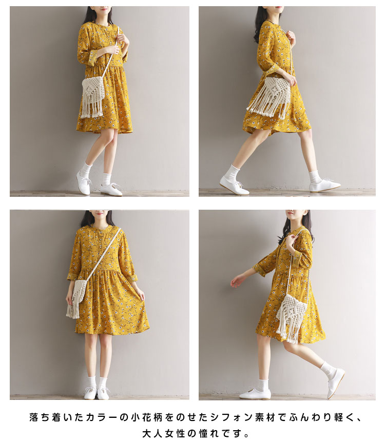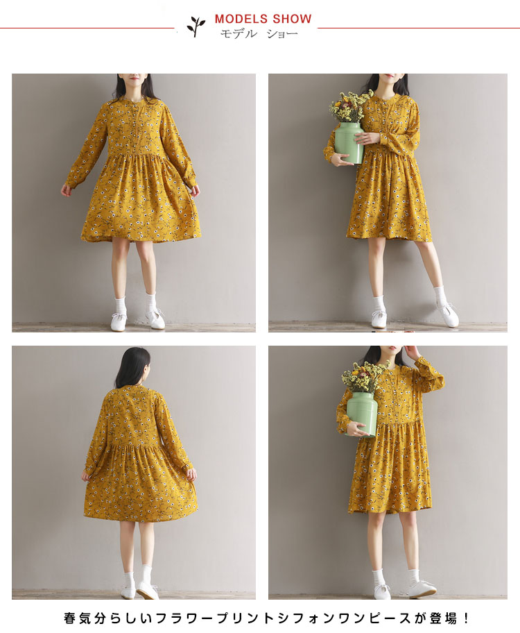 | 華やかな花柄で楽しむ本命のの美しさを体験してみて?春気分らしいフラワープリントシフォンワンピースが登場!落ち着いたカラーの小花柄をのせたシフォン素材でふんわり軽く、大人女性の憧れです。素肌でも快適で静電気も起きにくく透けません。肌寒いクーラーや冷房時は上からカーディガン等を羽織っても◎ | |