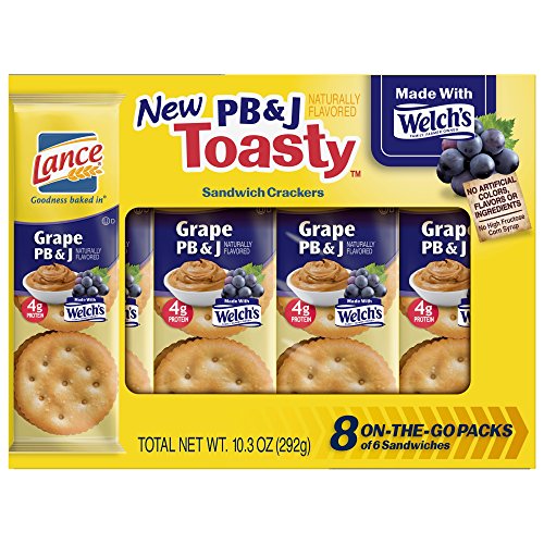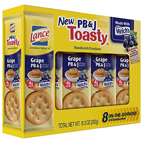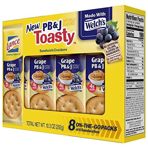 ReleaseDate : 2018-01-15 Studio : Snyders of Hanover - Cross Dock Publisher : Snyders of Hanover - Cross Dock Binding : Grocery Product Description A classic sandwich combo now in sandwich crackers! Made with real Welch's grape jelly with no high fructose corn syrup or artificial ingredients. Enjoy the delicious taste of a classic peanut butter and jelly sandwich on-the-go in our convenient single-serve packets! Six cracker sandwiches per packet and eight packets in each box. 0