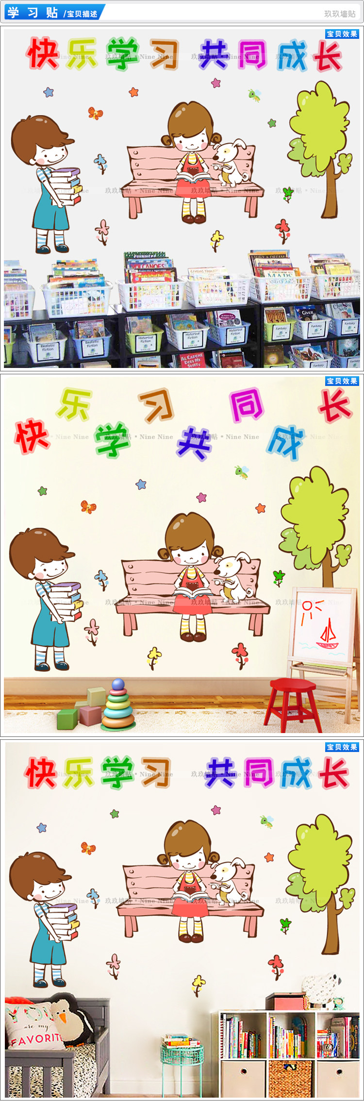 书店幼儿园小学阅览室图书角图书馆墙贴学习阅读读书教室贴画贴纸