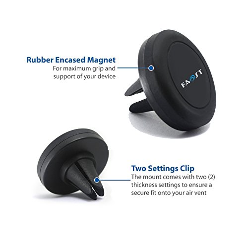 -. Feature : POWERFUL MAGNETIC MOUNT: The reinforced magnetic holder of this mount is quite different from other mounts. This Universal magnetic holder produces an intensive force of attraction that will hold any smartphone, including Android, Apple, Blackberry, HTC, Sony, ZTE,Huawei and Microsoft devices. / STURDY BASE: Faost high quality construction of the mount's base is unique and functional as well. It warrants that the base of the mount will solidly hold the magnetic head of the mount, to keep your smartphone in place, regardless of road vibrations or impacts. / SWIVELS YOUR DISPLAY: Rotate your smartphone and swivel your display as you like. The base of the mount remains fixed into the air vent of your car and does not move, no matter how much swiveling or rotation you do. This guarantees that your smartphone will always remain in your preferred position. / EASY YOU USE: Faost Air vent universal magnetic car mount holder is much easier to use than any other magnetic car mount holder due to its simple and complementary design. It has a sturdy rubber base and a powerful magnetic head for holding your cell phone,all of smart phones. / RECOMMEND USE: Faost thumb-up stand/holder for larger size display devices,kindle,7 inch tablet PC or any other electronic device This is the only limitation for Air vent universal magnetic car mount holder using in office or at home