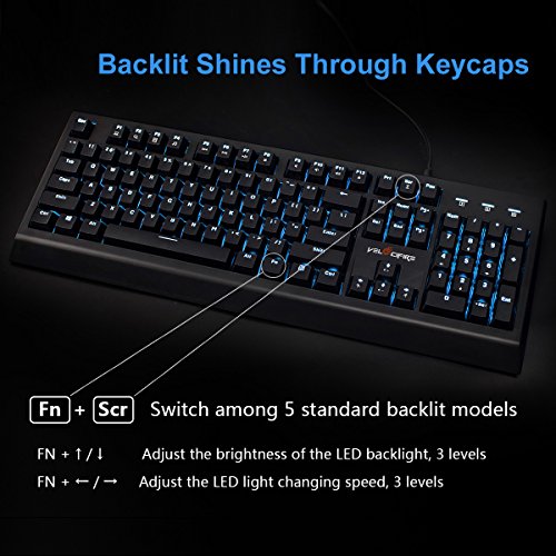 BACKLIT: Awesome greenish LED backlit shines through double-shotted keycaps and can be adjusted into 5 modes, gradual, breathing etc. It can support you to use the keyboard in the dark, and you can choose to switch it off as well.