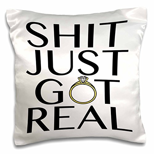 3D Rose Shit Just Got Real Black Pillow Case, 16" x 16"