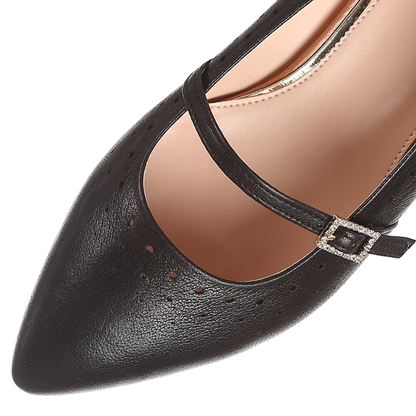 네추럴한 빈티지 가공 양가죽을 사용하고, 쿠션패드를 삽입한 경량가공 고무창을 사용하여 가볍고, 착화시 발이 편안함. 반짝이는 큐빅버클장식이 포인트