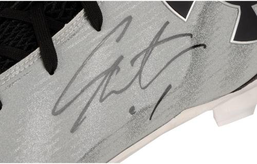 Cam Newton Carolina Panthers Autographed Under Armour Metallic Silver and Black Cleats - Fanatics Authentic Certified
