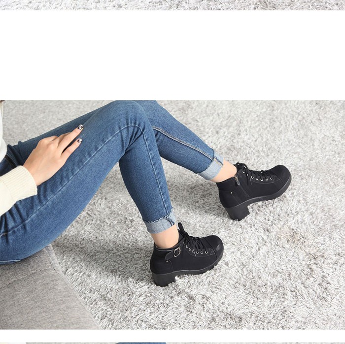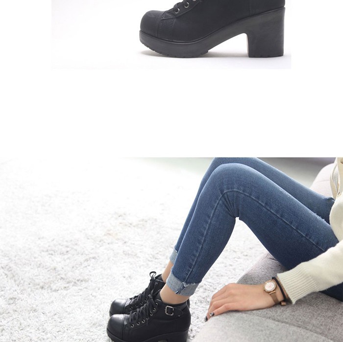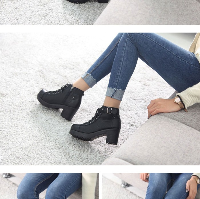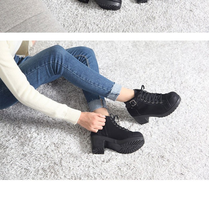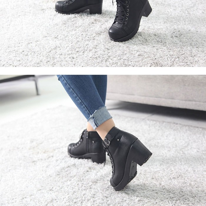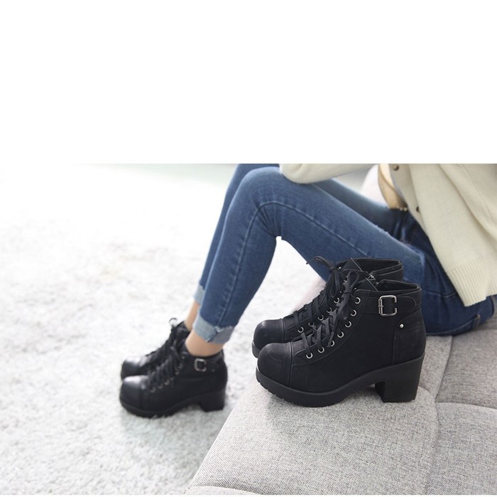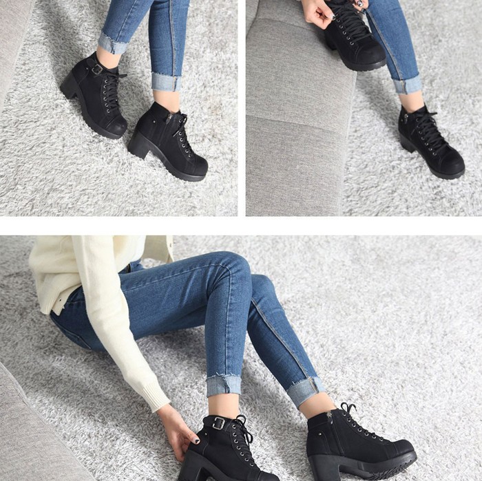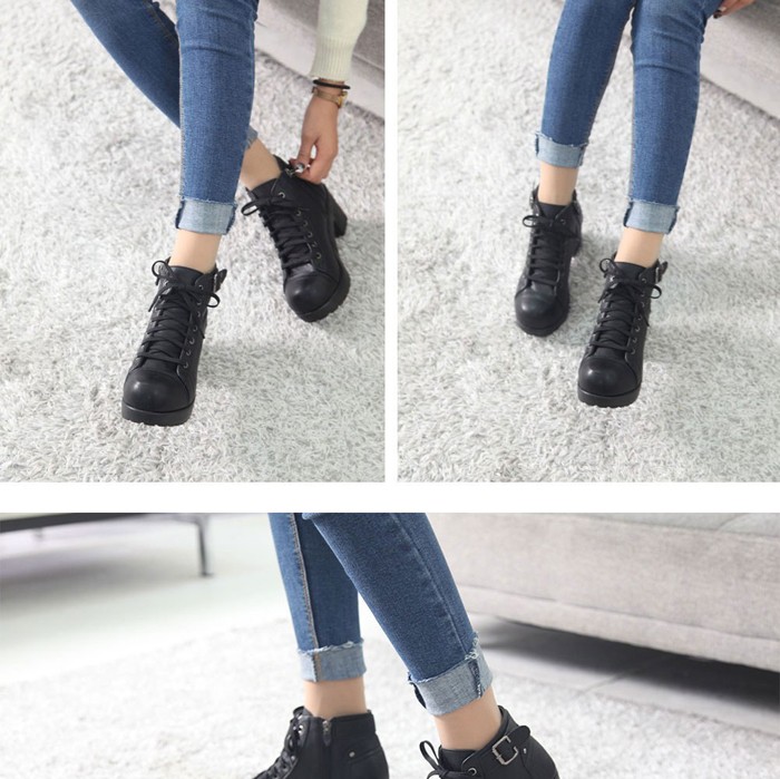 商品名:ショートブーツ レディース チャンキーヒール 太ヒール レースアップ 2017 秋冬 ファッション 靴 婦人靴
