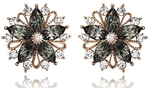 -. Title : Marvelous Flowerブラックダイヤモンド色クリスタルブロンズメッキポストイヤリング[スワロフスキーエレメントクリスタル]