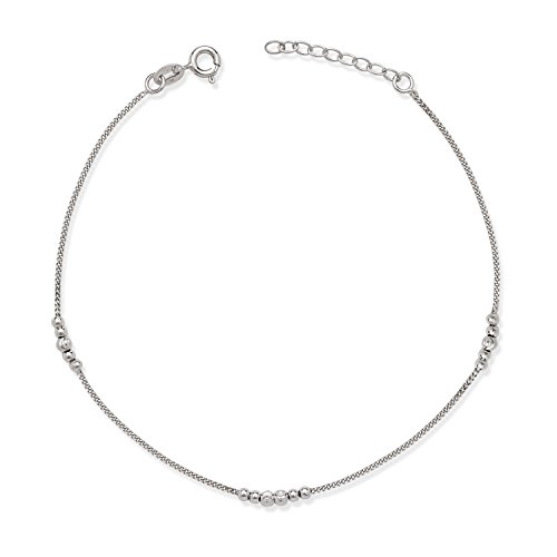 -. Title : Sterling Silver 9" + 1" Extension Diamond-Cut Beads Anklet