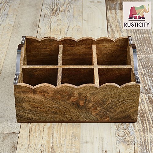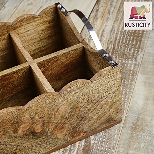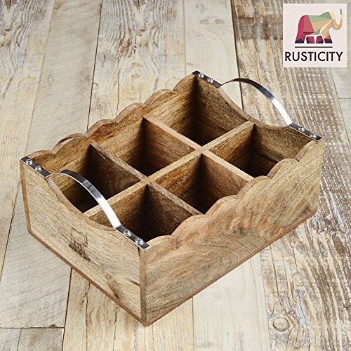 Rusticity Wooden 6 Bottle Holder Caddy Rack for Beer and Wine with Handles | Handmade | (10x7 in)
