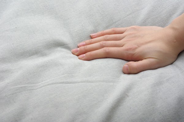 綿の産地、インドの綿を使用しています。太番手の糸を使い、ざっくりとした風合いです。綿はポリエステルに比べ静電気がおきにくく、繊維の中でも特に肌触りが良いのが特徴です。季節を選ばずオールシーズンご使用頂けます。ご家庭の洗濯機で洗える(ネット使用)ので、清潔にご使用頂けます。