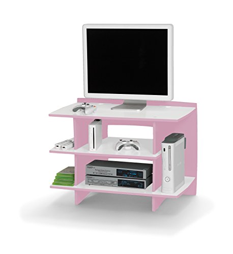 Legaré Kids Furniture Princess Series Collection, No Tools Assembly Gaming Center Stand, Pink and White