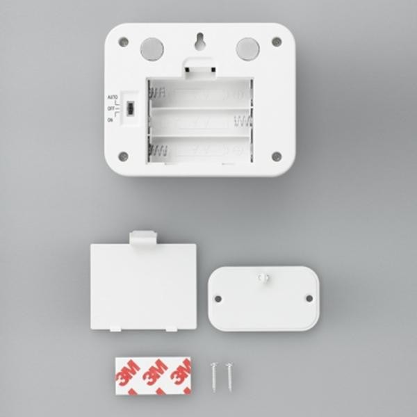 | 仕様 | ●本体カラー:ホワイト ●検知方法:人感明暗センサー ●使用電池:単3形乾電池×3本(別売) ●連続点灯時間:約24時間 ●光源:白色LED×2灯(交換不可) |