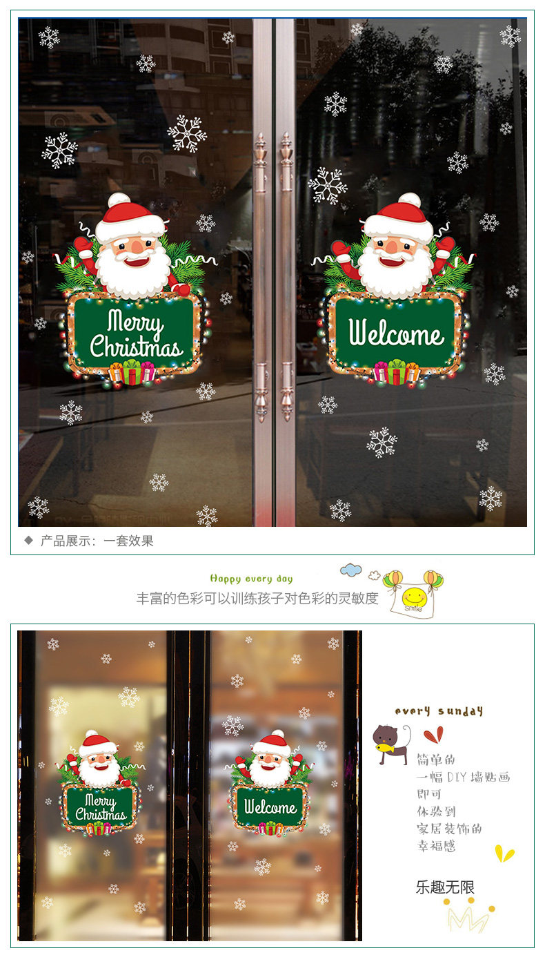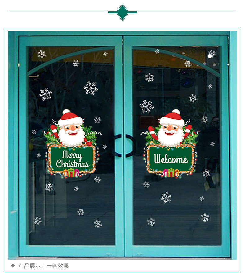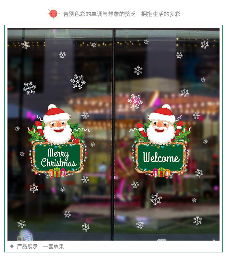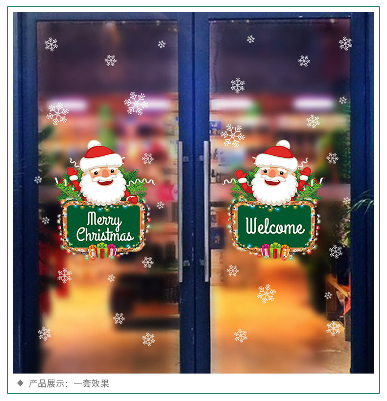 圣诞老人店铺招牌贴画玻璃门贴雪花橱窗贴纸墙上壁纸卡通墙贴自粘