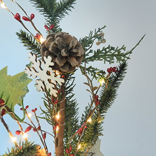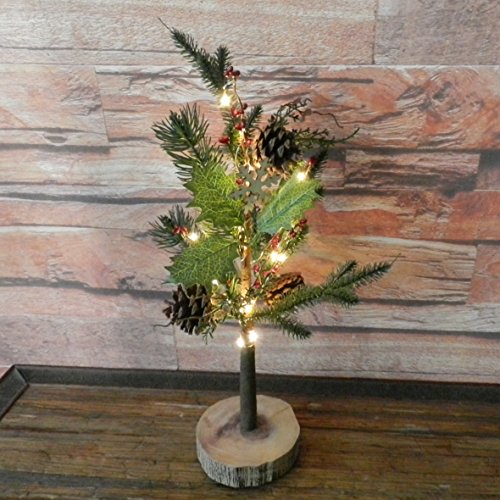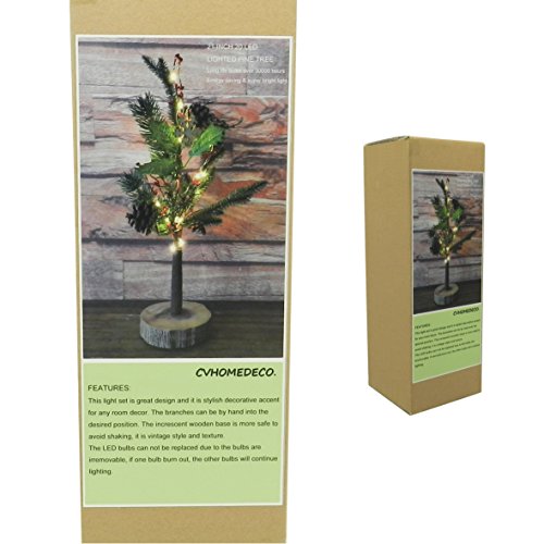 CVHOMEDECO. Battery Operated w/Timer Lighted Pine Tree Tabletop LED Light, 20 Warm White LEDs, Rustic Vintage Wooden base, For Home/Party/ Wedding/Festival/Indoor Decoration, 21-Inch
