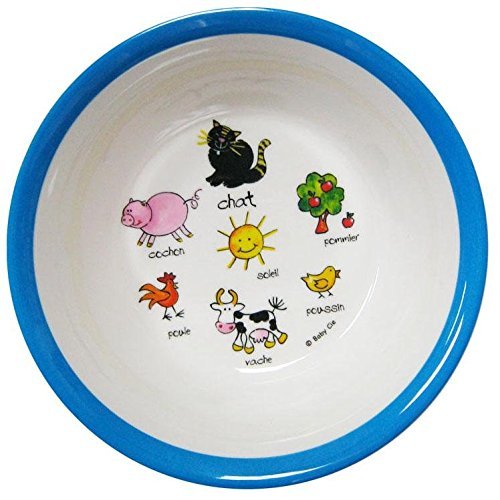 -. Feature : BPA free, drop-proof and dishwasher safe / Not microwavable, made from Melamine / Whimsical drawings with the French word
