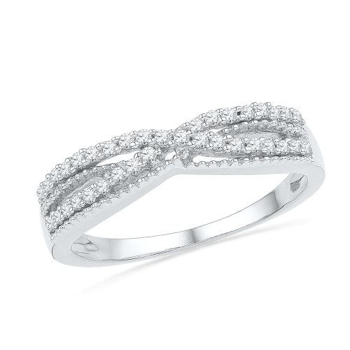 -. Title : 10KT White Gold Round Diamond Twisted Fashion Ring (1/5 cttw)