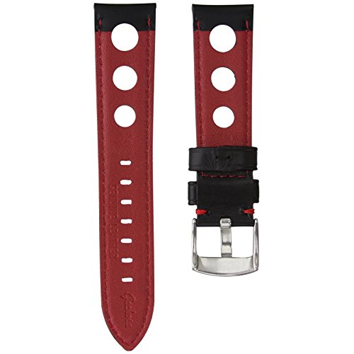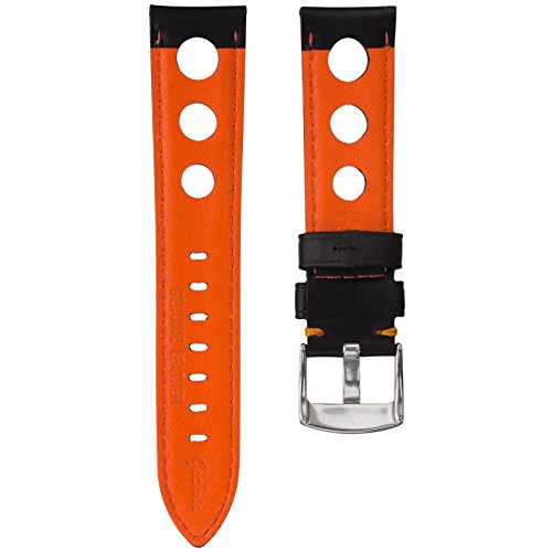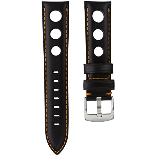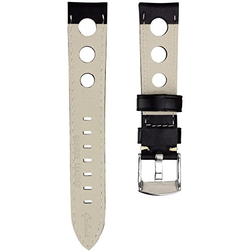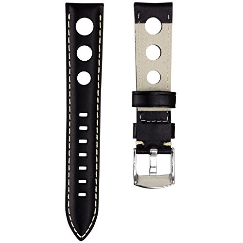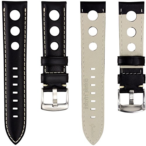 -. Title : Geckota Genuine Italian Leather Rally Sport Watch Band, Black with Contrasting Stitching