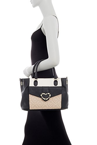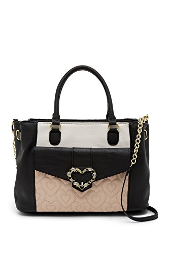 Betsey Johnson Rhinestone Jeweled Heart Snap Closure Quilted Heart Pocket Triple Entry Satchel Shoulder Bag