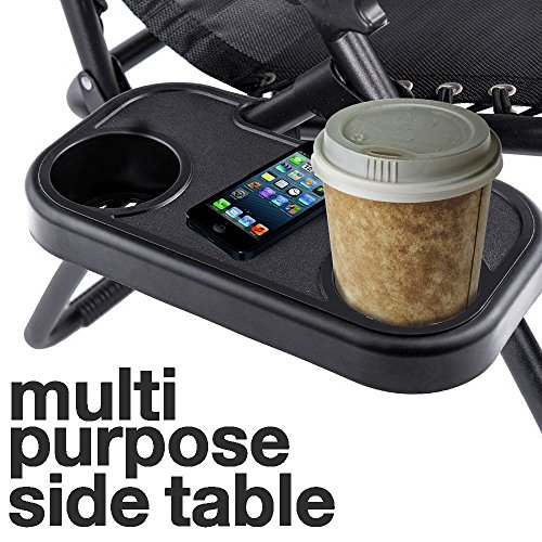 - GREAT OUTDOOR COMPANION --- Enjoy warm sunlight while sitting on your gravity chair with a glass of ice lemon tea, or go fishing while steeping a cup of hot coffee on your side. This chair tray is a great additional attachment for summer pool cocktail party. Feel weightless and stress-free with your zero gravity recliners and enjoy your beverages in your arms reach.