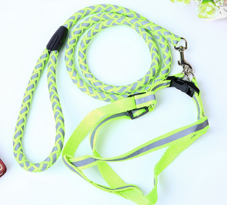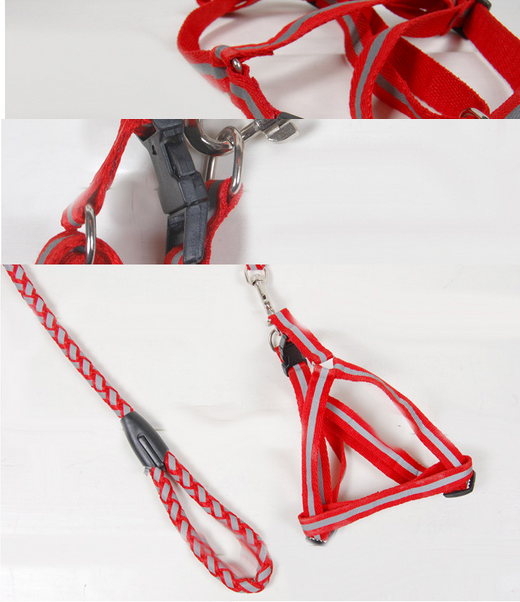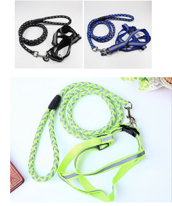 Thickened nylon material, reflective strip design pull rope knitting, chest back design, dog comfortable. Chest and back strap can effectively correct the dog's bad way to protect the dog will not be injured. Telescopic buckle design, the dog is to grow up some can also be used.