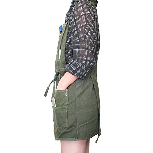 Bivan Canvas Artist Apron with Pockets for Women Men, Gardening Apron Slight Waterproof Painting Apron for Painters School Students, Utility or Work Apron, (Medium, Green)