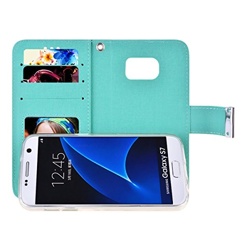 Galaxy S7 Case, SmartLegend Wallet Case 2 in 1 Premium PU Leather Folio Protective Shell Magnetic Detachable TPU Inner Back Cover with Card Slots & Wrist Strap for Samsung Galaxy S7 (Green)