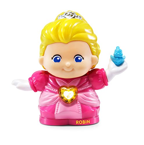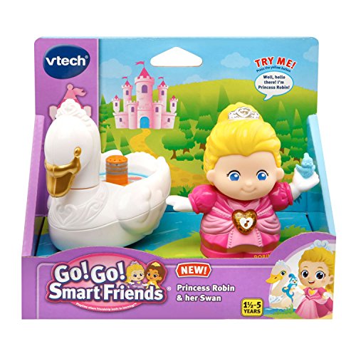 Sing and dream with Princess Robin and her Swan from the VTech Go! Go! Smart Friends kingdom. Place Princess Robin on the MagicPoint location on her swan to experience her friendly personality and fun melodies. Explore the realm by placing Princess Robin on MagicPoint locations on Go! Go! Smart Friends playsets (each sold separately) to trigger different phrases, motion, lights and more. Press her light-up button, and she will come to life by introducing herself, talking about what it’s like to live in a kingdom and singing songs. Each Go! Go! Smart Friends character is unique. Collect them all to create a whole kingdom featuring princesses, princes, magical creatures and more. Requires 2 AAA batteries (batteries included for demo purposes only; new batteries recommended for regular use). Intended for ages 18 months to 5 years.Feature