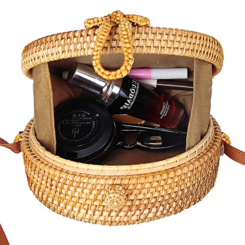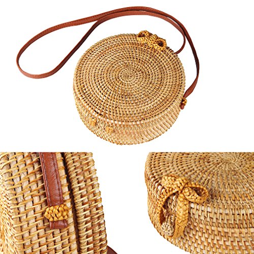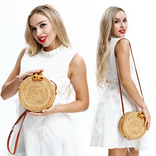 - ✅BLOGGER, TOP 10 HIT HOLLYWOOD BAGS FOR WOMEN: As seen on social media / fashion blogger and fasion web, exactly same source product with great value, it is best choice for you, Handmade Woven Rattan Round Straw Crossbody Tote Bag With Shoulder strap Beach Bag for Women.