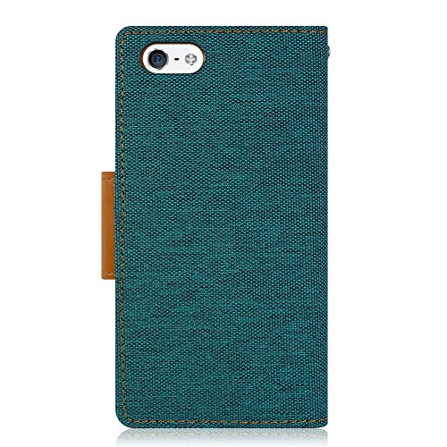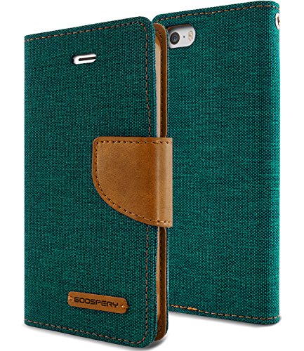 iPhone 5SE Case, iPhone SE / 5S / 5 Case, [Drop Protection] GOOSPERY® Canvas Diary [Denim Material] Wallet Case [ID Credit Card and Cash Slots] with Stand Flip Cover - Green / Sand Brown