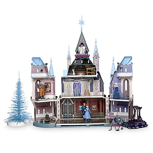 Brighten the winter holidays with our towering Castle of Arendelle. Recreate favorite scenes from Olaf's Frozen Adventure with this three-level play set that includes seven figures, light-up tree, two sleighs, plus accessories.Feature