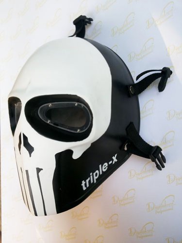 -. Binding : Sports -. Brand : INVADER KING -. Feature : Made by handmade Fiberglass.eye protection we have chosen the polycarbonate of the size 1.5.mm to protect your eye. -. IsAutographed : 0 -. IsMemorabilia : 0 -. ProductGroup : Sports -. ProductTypeName : SPORTING_GOODS -. Title : Unique New Handmade the Punisher Triple X Paintball Airsoft Bb Gun Mask Black White Army Protective Gear Outdoor Sport and Fancy Party Ghost Masks