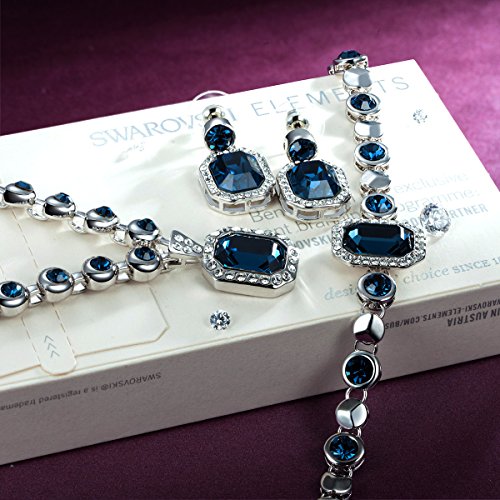 -. Title : Christmas Gift Dark Blue SWAROVSKI ELEMENTS Crystals Necklace Bracelet Earrings Set Fashion Jewelry Sets