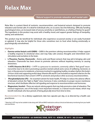 Relax Max, 60 Vegetarian Capsules, Vitamin B-6, Vitamin B-12, Magnesium, Inositol, Taurine, German Chamomile, Gamma-aminobutyric Acid,...