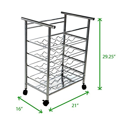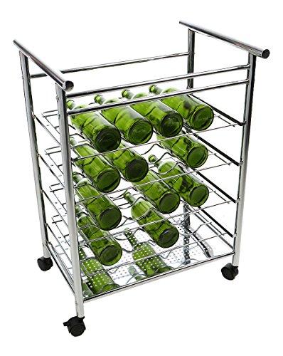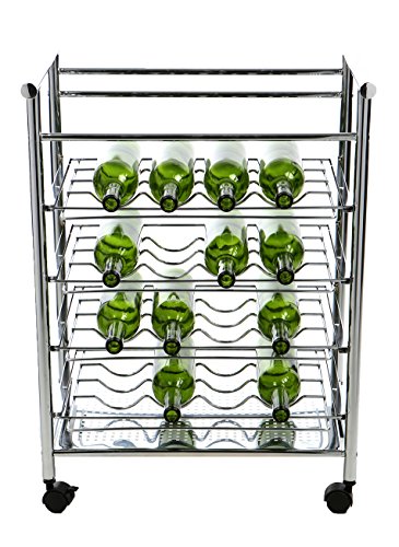 Mind Reader 4 Tier Wine Bottle Mobile Cart, Silver