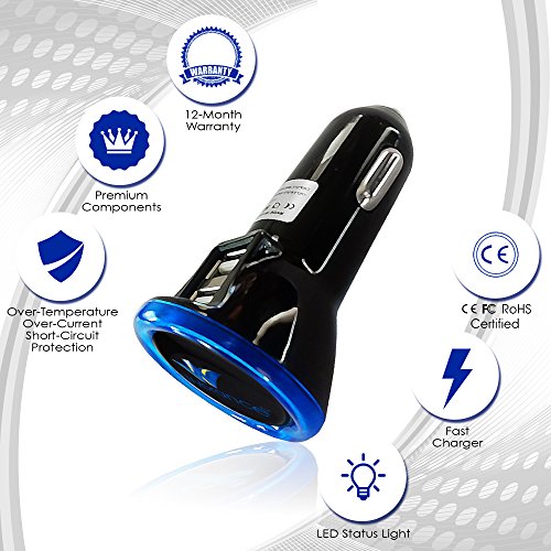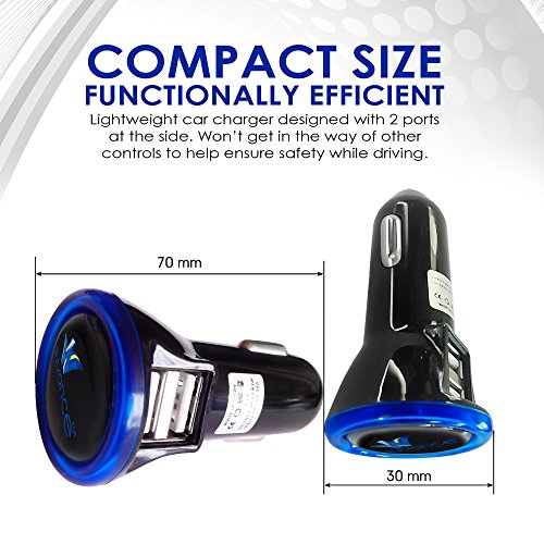 ELEGANT AND COMPACT - Our low profile car charger is designed keeping in mind the elegant interior of your car. It has a sleek and slim design and comes in black color with blue ring that goes great with any type of interior. It is a small size cigarette plug that is easy to carry and store. Compact enough even for tight motorcycle compartment and fits all standard cigarette car lighter 12v plug.